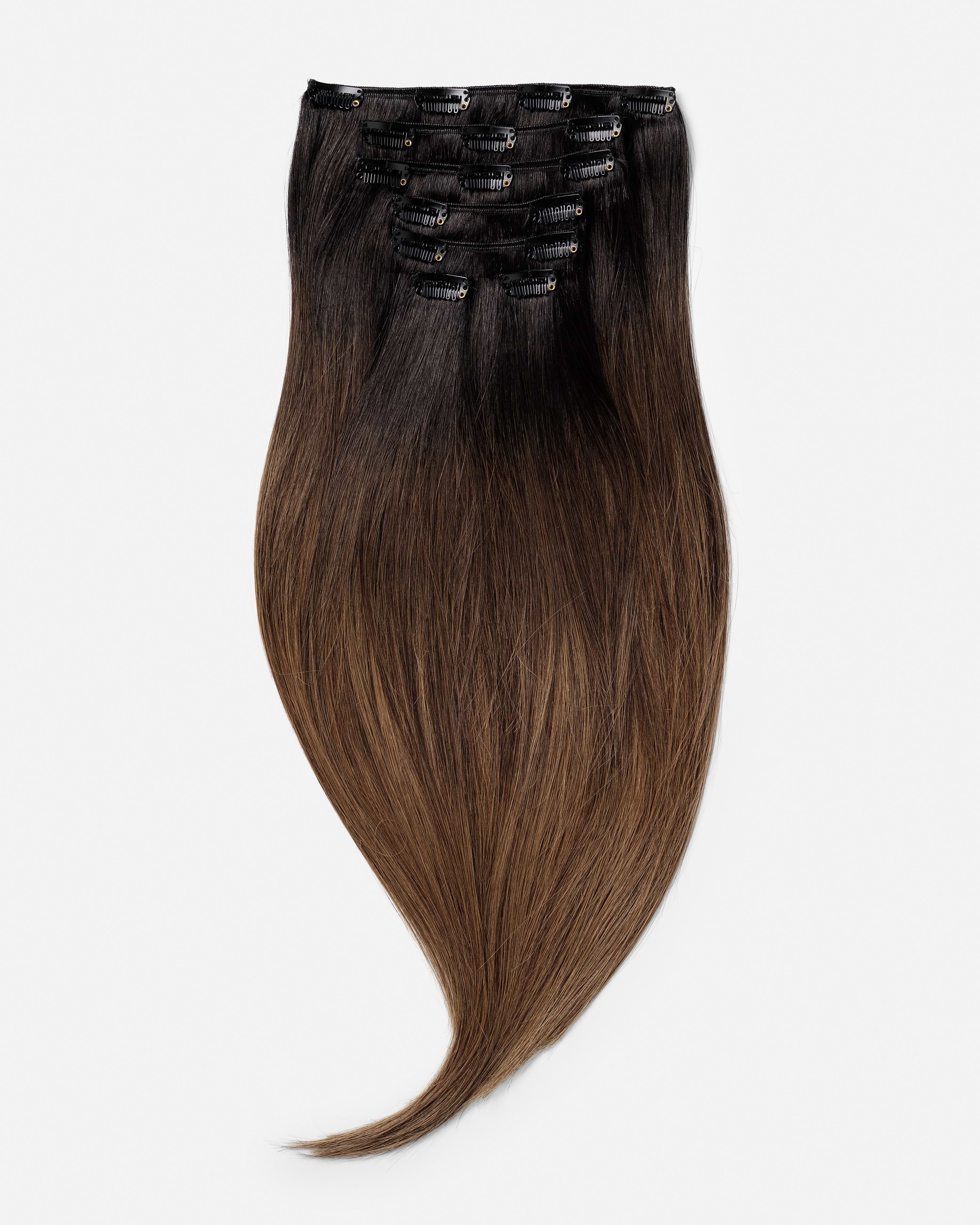 Classic Clip-ins 40 cm – Straight – Classic Clip-ins – Medium Volume – 7 Pieces – Deep Brown ColorMelt – Rapunzel of Sweden