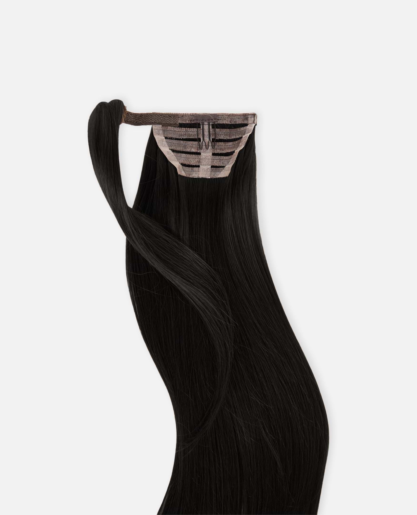 In our range, we have Ponytail Straight Medium Volume, Vegan Ponytail Straight Medium Volume, Vegan Ponytail Beach Wave Medium Volume, Vegan Ponytail Spiral Curls Medium Volume, and Ponytail Straight Light Volume. Which one you should choose mainly depends on how thick your hair is. Put your own hair in a ponytail and measure the circumference. If it's 8 cm or less, a Ponytail with Light Volume is the best fit, and if it's more than 8 cm, you should choose a Ponytail or Vegan Ponytail with Medium Volume to ensure the attachment fits around your hair.