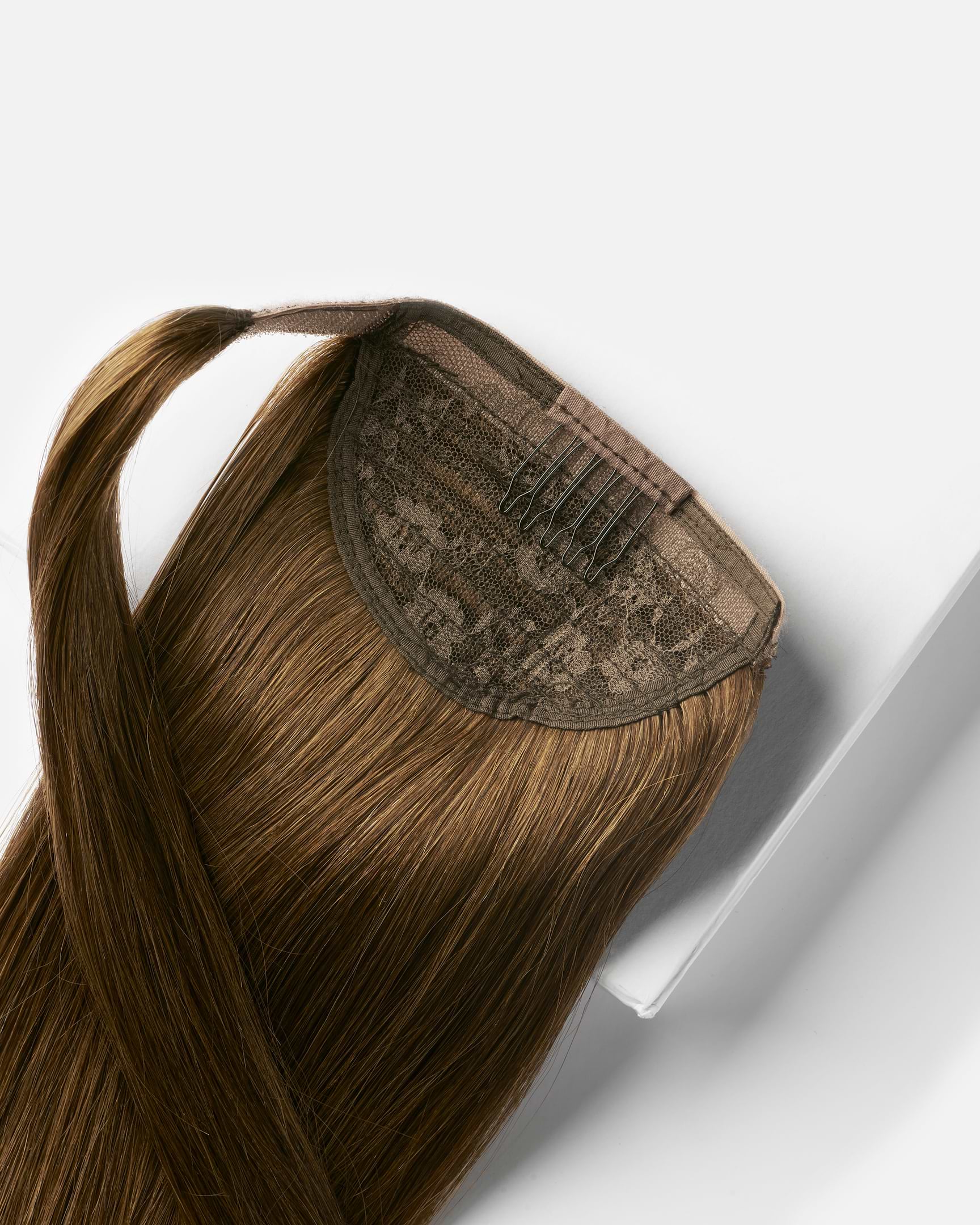 In our range, we have Ponytail Straight Medium Volume, Vegan Ponytail Straight Medium Volume, Vegan Ponytail Beach Wave Medium Volume, Vegan Ponytail Spiral Curls Medium Volume, and Ponytail Straight Light Volume. Which one you should choose mainly depends on how thick your hair is. Put your own hair in a ponytail and measure the circumference. If it's 8 cm or less, a Ponytail with Light Volume is the best fit, and if it's more than 8 cm, you should choose a Ponytail or Vegan Ponytail with Medium Volume to ensure the attachment fits around your hair.